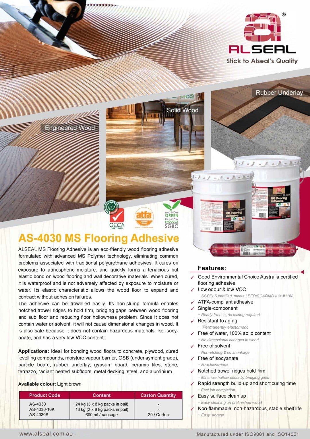 Flooring Adhesive MS Polymer Alseal AS-4030